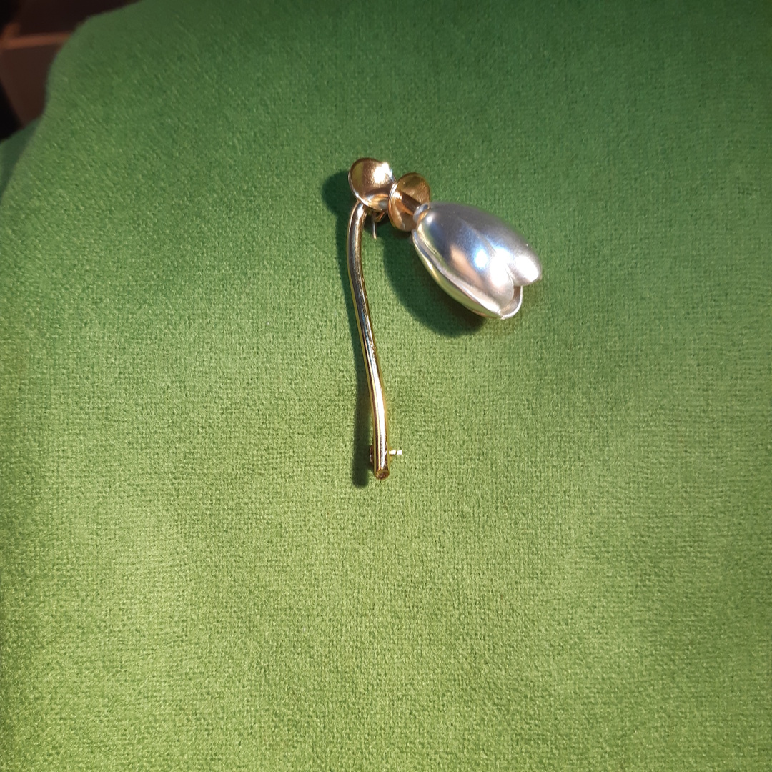 Nach Vorlage dieses Entwurfes wurde sie neu interpretiert und durch Meisterhand in Silber/Silber vergoldet zu einem anmutigen Schmuckstück von erbstückwürdiger Qualität verarbeitet.